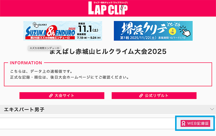 WEB記録証(完走証)は、上記の速報サイト「LapClip」よりご自身でダウンロードしていただけます。